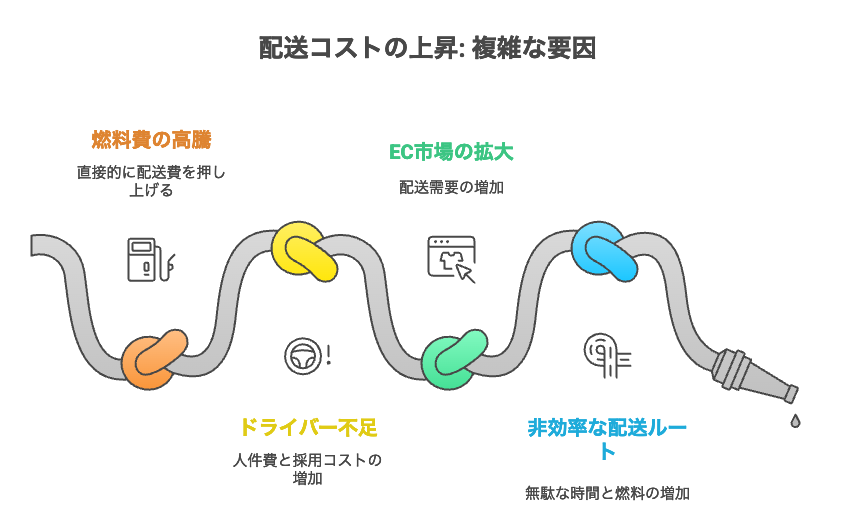 ガソリン・軽油の価格上昇は直接的に配送費を押し上げます。
