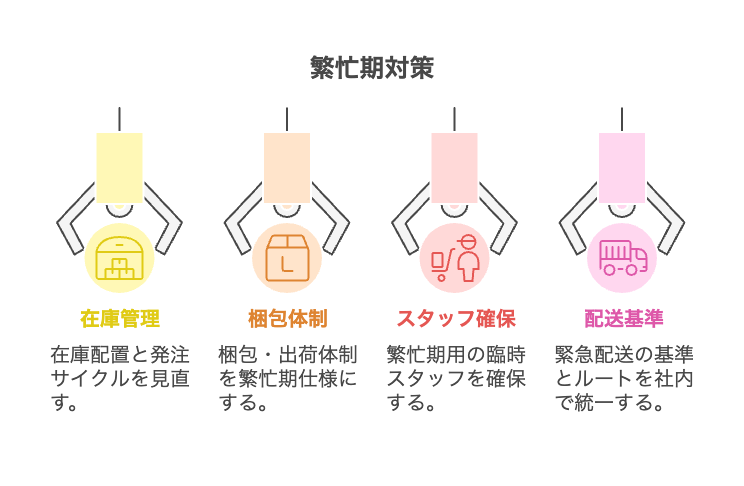 配送負荷の高いシーズンでも安定して出荷し、売上を落とさないための方法をまとめています。