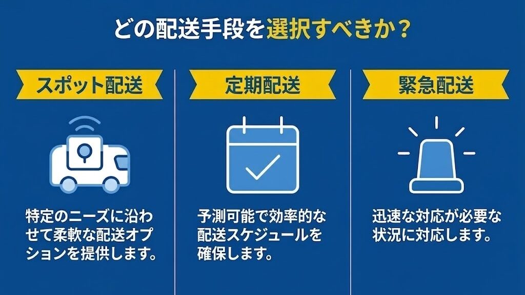 サポロジでは、複数の配送手段を組み合わせて最適な手配が可能です。