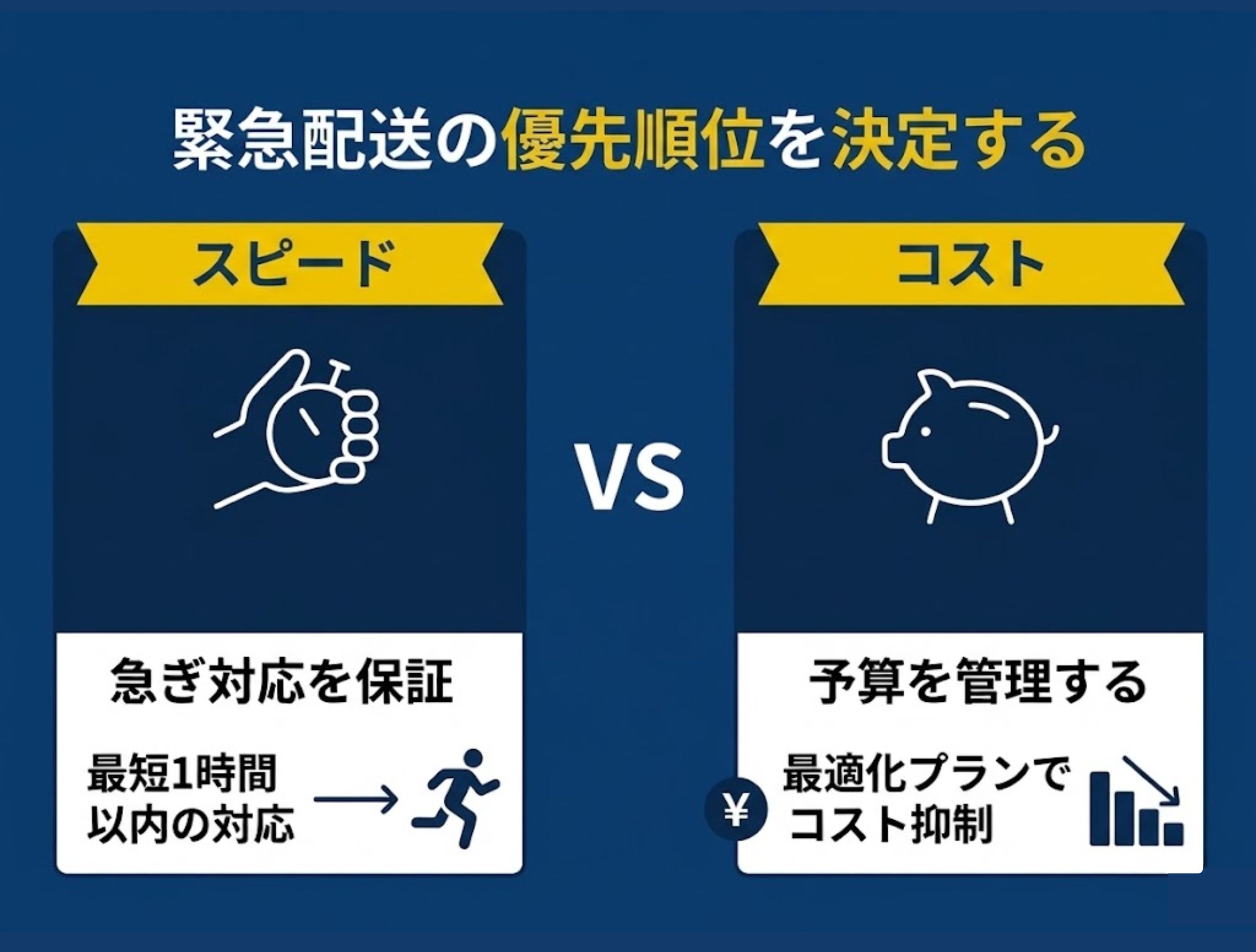 急ぎ対応ではスピードが優先されますが、コストとのバランスが必要です。